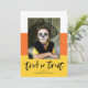Souhaitez à vos amis et à votre famille une Halloween joyeuse en leur envoyant notre mignon carte photo d'Halloween Corn Candy. La carte d'Halloween amusante présente des rayures couleur maïs bonbon avec les mots "Trick or Treat" en noir, écrit à la main. Personnalisez les cartes Halloween uniques en ajoutant une photo, vos noms ou tout autre texte personnalisé. L'envers est décoré de points noirs et blancs.