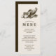 Célébrez Thanksgiving cette année avec ce menu unique Thanksgiving dîner. Il présente une illustration de style vintage d'une corne remplie de fruits et de légumes. Symbole classique d'une fête d'Action de grâces. Il est assis sur une toile de fond claire et brun avec vos détails dans une couleur marron noyer similaire à l'illustration.