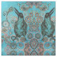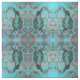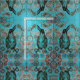 la peinture d'une grande corneille noire sur un arrière - plan bleu avec un rose et l'or Paisley entourent le motif de point.
