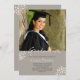 Une invitation chic à la remise des diplômes qui met en vedette un arrière - plan taupe avec deux détails abstraits en coin. Le mot "Graduation" est préimprimé et recouvre la zone photo.