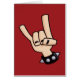 Métal lourd, roche et rouleau, cornes diables signe à la main avec un bracelet clouté en cuir noir.