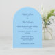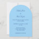 Doté d'élégantes lettres imprimées sur une carte en arc, ce faire-part de mariage a un look traditionnel sophistiqué et est facile à personnaliser en utilisant le modèle de personnalisation en ligne avant de commander. L'invitation présente un élégant texte bleu foncé sur un bel arrière - plan bleu cornflower.