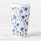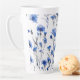 Mug en latte de fleur de corne. Design floral blanc et bleu.