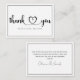 Express ton amour et ta gratitude à des amis et à la famille pour célébrer avec toi cette journée spéciale avec cette carte de remerciement simple mariage. Un message original a été inclus pour vous sauver du temps écriture manuscrite un, vous pouvez le modifier pour utiliser vos propres mots de remerciement si nécessaire. **VEUILLEZ LIRE AVANT DE COMMANDER** Ces petites cartes de notes sont parfaites pour la remise aux invités à votre événement mais elles sont trop petites pour envoyer par la poste. Si vous cherchez des cartes à envoyer par la poste, changez la taille à 3,5"x5" avant de les ajouter à votre panier. Si vous modifiez la forme ou la taille ou choisissez un autre produit et que la conception est recadrée de quelque façon que ce soit ou ne s'affiche pas correctement sur la page, vous devrez utiliser le service de design en direct pour que quelqu'un vous adapte la mise en page, à moins que vous ne soyez à l'aise de le faire vous-même. Il n'y a pas de vérification manuelle ou d'intervention entre le placement de la commande et l'impression, donc ce que vous voyez à l'écran est ce qui vous sera imprimé et expédié. Dans cet esprit, veuillez également triple-vérifier pour toute erreur d'orthographe ou information incorrecte avant de passer votre commande.