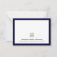 La conception de cartes à billets plats à double face intemporelle est simple et propre, avec le logo de l'entreprise en haut, le nom, l'adresse et les coordonnées dans les tiers inférieurs, encadrés en bleu marine. Le dos affiche votre logo dans les tiers inférieurs. Typographie de bloc classique qui peut être personnalisée avec votre nom, entreprise, informations de contact ou texte personnalisé de votre choix. L'espace pour votre note manuscrite est inclus à l'avant et à l'arrière.