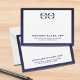 La conception de cartes à billets plats à double face intemporelle est simple et propre, avec le logo de l'entreprise en haut, le nom, le titre et l'entreprise dans les tiers inférieurs, encadré en bleu marine. Typographie de bloc classique qui peut être personnalisée avec votre nom, titre, entreprise ou texte personnalisé de votre choix. L'espace pour votre note manuscrite est inclus à l'avant et à l'arrière.