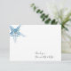 Simple et côtier, cette papeterie présente les mots Merci dans une typographie à écriture manuscrite branchée avec un design étoilé en utilisant une réplication de mon art d'aquarelle peint à la main d'origine. La carte revient à un bleu solide gratuit. Un choix élégant pour un carte de remerciements de mariage à la plage ou des cartes nautiques. Pour voir d'autres dessins de Victoria Grigaliunas, visitez www.zazzle.com/dotellabelle
