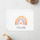 Joli arc-en-ciel boho personnalisé avec coeur, carte papier à lettres pour enfant. Roses, bleus, tons pastel moutarde.