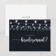 Cette carte de note de proposition de serveuse à cordes rustiques est parfaite pour un mariage moderne. Le design présente de belles lumières à cordes peintes à la main dans un arrière - plan bleu foncé. Changez le libellé et utilisez ces cartes pour demander à tous les membres de votre fête de mariage : bonne d'honneur, maîtresse d'honneur, demoiselle d'honneur, demoiselle d'honneur, demoiselle d'honneur junior, fille de fleurs, meilleur homme, groomsmen et plus !