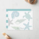 Cette carte de papeterie chic et personnalisée de la côte présente des coquillages, une tortue de mer/honu, et des étoiles de mer dans les tons bleu pastel et vert sur un arrière - plan blanc. Vous pouvez trouver des produits correspondants dans mon magasin.