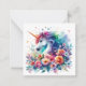 Carte Imaginaire Art. Belle Unicorne aux couleurs vives avec des fleurs vives. Cette carte est vide à l'intérieur pour votre propre message.
