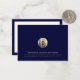 Faites une impression durable avec notre carte de billets d'affaires bleu et or de la Marine. Cette carte de notes sophistiquée présente un logo de sceau or avec le nom de votre entreprise et les coordonnées en typographie classique dorée sur un arrière - plan bleu marine élégant, L'espace blanc pour votre note sur le dos dispose d'un logo plus petit et est encadré en bleu marine riche pour une touche professionnelle.