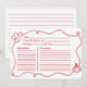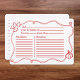 Profitez du charme des cuisines italiennes classiques avec cette carte de recettes rouges d'inspiration vintage. Doté d'une bordure dessinée à la main, d'une illustration de cravate et d'un accent ail, ce design ajoute une touche d'ancien et de douceur à vos recettes manuscrites. Avec de l’espace pour les ingrédients, l’itinéraire, les portions et le temps de cuisson, il est parfait pour les cuisiniers à la maison, les collections de recettes de douches nuptiales et les cadeaux réfléchis. Un ajout élégant et pratique à n'importe quelle cuisine !