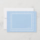 Une carte de remerciement sucrée avec une touche de nostalgie. Le motif à pois bleus et blancs encadre un petit enfant sur un cheval à bascule, habillé en cowboy. (Freevector.com - garçon qui joue). La carte est facile à personnaliser avec votre texte, police, couleur de police, options de forme de papier et choix parmi six types de papier.