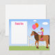 Carte de remerciement pour anniversaire western. Remerciez les amis de votre enfant d'être venus à leur fête d'anniversaire avec cette carte de remerciement personnalisable pour une fête d'anniversaire avec cavalier. Comporte une fille blonde chevauchant un cheval avec des ballons de fête. Invitation d'anniversaire assortie disponible. Certains éléments ©JDDigiDesign