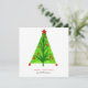 Style contemporain avec ce design minimaliste d'une illustration d'arbre de Noël vert vif et artistique avec des ornements rouges sur un arrière - plan blanc et typographie que vous pouvez facilement personnaliser à l'avant et à l'arrière.