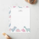 Carte de vœux en papier à lettres pour enfants avec une illustration dessinée à la main de dinosaures pastel rose.