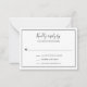Mini carte RSVP mariage simple en noir et blanc avec "gentiment répondre par" dans une police de script manuscrite élégante et vos options de réponse entourées d'une fine bordure. La disposition classique et traditionnelle fait de cette carte RSVP un choix idéal pour une suite de faire-part de mariage formelle.