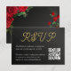 Un RSVP con estilo. Esta tarjeta de confirmación combina perfectamente con tu invitación de boda audaz y romántica — con flores rojas, detalles dorados y un toque de elegancia moderna. Incluye un código QR y se puede personalizar con los detalles de tu evento.