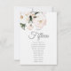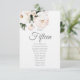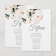 Des roses blanches délicates en haut à gauche de cette carte d'attribution élégante. Typographie grise personnalisable pour le nom ou le numéro de table, et pour la liste des invités.