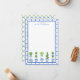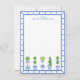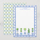 Cette carte à notes chic présente 5 topiaires différentes dans des pots de chinoiserie. La bordure autour de la carte est un cadre bleu en bambou. Vous pouvez personnaliser avec votre nom. Le dos de la carte a un motif en treillis diagonale avec de petites arcs bleus.
