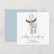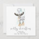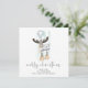 Joli script Reindeer Joyeux Noël est dans un script stylé. Personnalisez facilement votre nom et votre salutation en bas. Un bleu glacé coordonné est sur le dos.