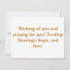 La bénédiction biblique trouvée dans les numéros 6:24-26 orne cet aimant. Le texte dit : "Que le Seigneur vous bénisse et vous protège. Puisse le Seigneur vous sourire et être gracieux envers vous. Que le Seigneur vous montre sa faveur et vous donne sa paix." Le texte au verso de la carte dit : "Pensez à vous et priez pour vous ! Envoie des bénédictions, des câlins et de l'amour !