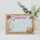 Rustic Fishing Thank You Note Card avec poteau de pêche, filet, boîte à pêche, casquette et un poisson coloré. Ancien arrière - plan de papier et de planches de bois. Illusion dessinée à la main par McBooboos. Invitation correspondante disponible.