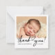 Écran abordable Coeur Photo Baptême Merci Note Card avec un design moderne et élégant. Le design avant comprend de l'espace pour votre photo et des champs personnalisables pour le nom et la date, créant une touche personnelle. Le dos personnalise facilement votre message pour remercier vos invités dans le style. Cette carte moderne est parfaite pour célébrer n'importe quel jalon avec style.