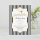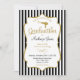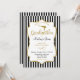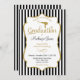 Une élégante faire-part de graduation Cosmetology en noir et or avec cadre d'accent de parties scintillant en or faux et rayures noir et blanc avec texte or et noir et un sèche-cheveux d'apparence parties scintillant or. Cette élégante faire-part de graduation Cosmetology est une façon mignonne et amusante d'invitation vos invités pour votre grande journée.