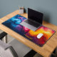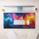 And abstract desk mat design inspired by cosmos offering colorful space clouds, and glittering stars You can remove or customize the name on the design. This is a great design for sci-fi lovers, space lovers, and abstract art lovers.