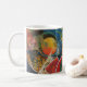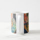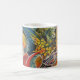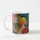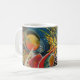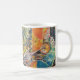 Colorful abstract cosmic garden art coffee mug with vibrant sun, flowers and flowing shapes wrapping around the cup, ideal for brightening your morning coffee ritual.
