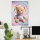 An adorable teddy bear floating through a dreamy pastel universe in a cozy astronaut suit. Surrounded by soft clouds, stars, and gentle cosmic colors, this artwork blends kawaii charm with space fantasy. Perfect for nursery decor, kids’ rooms, gift prints, and anyone who loves cute, dreamy, and calming illustrations.