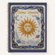 Explore the mysteries of the universe with the "Cosmic Wonders" journal. The cover features a magnificent faux-embroidery illustration of a golden, radiant sun with a serene face at its center. Surrounding the sun are "hand-stitched" planets with rings, a smiling crescent moon, and sparkling stars. The design is further enhanced with shimmering "sequin" accents and a thick, intricate twisted rope border in shades of deep blue, purple, and gold. Set against a clean cream linen-textured background, this design perfectly balances ancient celestial motifs with a modern, handcrafted feel.