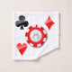 Cet ensemble jouer-orienté de serviette comportant un jeton de poker décoré d'un monogramme avec des costumes de carte de jeu à l'arrière-plan fait une grande addition à la salle de bains de n'importe quel joueur. Customisez le monogramme avec l'initiale que vous aimez et n'oubliez pas de vérifier le rideau en douche assorti, le support et le savon de brosse à dents distribuent l'ensemble, ou le tapis de salle de bains aussi !