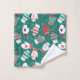 Ce design motif de nouveauté présente des mitaines dessinées à la main avec des motifs griffés uniques sur chaque mitaine, parfait pour la saison hivernale fraîche. Chaque adorable mitten a des flocons de neige, des coeurs, des rayures festives, des cordes et des poms en tricot, et sont entourés de points de flocon de neige. Coloré dans une palette classique de couleurs de Noël de vert foncé, rouge et blanc. Customisez la couleur arrière - plan verte profonde de votre choix.