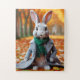 Ce charmant puzzle présente un adorable lapin blanc dans un élégant manteau gris et une écharpe verte, assis sur un décor d'automne pittoresque. Des feuilles d'automne lumineuses et des couleurs chaudes créent une scène chaleureuse et accueillante, faisant de ce puzzle l'activité idéale pour une journée de détente. Les pièces de puzzle sont bien conçues, assurant une expérience de montage satisfaisante et agréable. Idéal pour les enfants et les adultes, ce puzzle non seulement divertit mais sert aussi de décor saisonnier magnifique une fois terminé