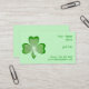Design moderne avec un "brillant", "pétillant" vert et blanc shamrock sur un arrière - plan vert pâle et vert texte. Modèle de carte de visite avec un design personnalisable pour vous permettre de personnaliser avec votre propre texte, images et idées. Veuillez noter qu'il s'agit d'une image créée à l'aide de photographies originales et de techniques numériques, elle ne brille pas ou ne contient pas de vrais étincelles.