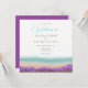 Faire-part de mariage avec Bright azure et rose magenta paysage nature avec la côte fleurie et les montagnes. Paysage floral Sunny Nature. Silhouettes de montagnes, côte de mer et fleurs roses et violettes lumineuses. Faire-part de mariage arrière - plan de peinture aquarelle. Azure Coast dans Bloom Collection.