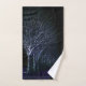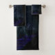 Dark Side 10 - Une rangée d'arbres à côté d'un chemin en noir, bleu, vert, blanc et violet. © Alan Harman Photography 2022. Tous droits réservés. www.alanharmanphotography.com 070422 serviette de bain