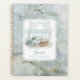 Cette belle planneuse à thème de plage a un design aquarelle. Le graphique d'un lit de plage en cabane avec l'océan entouré d'un arrière - plan de cireur bleu. Les couleurs utilisées comprennent, ardoise bleue, vert forêt, ivoire et bronzette.