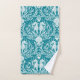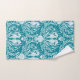 Ce motif turquoise de damas bleu et blanc a une torsion côtière - il comprend des hippocampes, des algues, des coraux et des coquillages pour une ambiance océanique sous-marine. L'ensemble de serviettes de bain est parfait pour la décoration de salle de bains côtière.