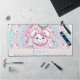 Élevez votre espace de travail avec ce tapis de bureau en coton personnalisé Kawaii Bunny Dot Mandala. Avec un lapin blanc doux orné d'un arc rose et entouré de bonbons en coton moelleux, de nuages et de gâteries en forme d'étoile sur un arrière - plan rayé rose pâle, ce tapis de bureau ajoute une touche de fantaisie et de charme à tout décor. Entouré d'un mandala à pointes complexes aux bords pétoncles, de motifs floraux et de teintes pastel rose, bleu clair et rouge profond, il allie élégance ludique et détails décoratifs. Parfait pour ajouter personnalité et confort à votre bureau, il offre également une surface lisse pour le travail ou les jeux. Personnalisez-le avec un nom pour une touche unique.