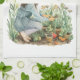 Ajoutez une esthétique campagnarde à votre cuisine avec cette serviette attrayante avec l'aquarelle d'une fille qui s'occupe de son jardin.
