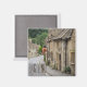 Aimant photo carré des anciens chalets couleur miel en pierre de Cotswold avec des ardoises sur le toit dans le petit village pittoresque de conte de fées de Castle Combe dans les Cotswolds, Angleterre, Royaume-Uni avec le texte : 'Angleterre, Castle Combe'. Un grand souvenir !