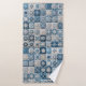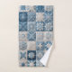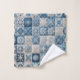 Une courtepointe présente des motifs complexes qui ressemblent à des flocons de neige, chaque bloc présentant des motifs bleus et blancs uniques