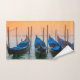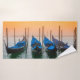 Cadre paisible à côté du Palais des Doges à Venise, Italie, avec quatre gondoles, le tout montrant un beau coucher de soleil brumeux.