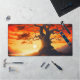 Ce tapis de bureau a une photo de coucher de soleil dessus.