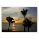 Palmiers doux balançants devant les nuages pastel, tandis que le soleil couchant se réfléchit dans l'océan à Kahana, Maui / Hawaii