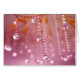 Image macro 3D d'un lustre en cristal. Des myriades de brins de perles de verre étincelantes attirent la lumière pour créer un joli bokeh dans l'arrière - plan. Les gouttes de verre floues se reflètent clairement dans les boules de cristal fortement focalisées au premier plan. Les branches d'or de la chandelle et l'atmosphère rose douce et les lumières donnent un coucher de soleil à la pièce. Créé en Vue.